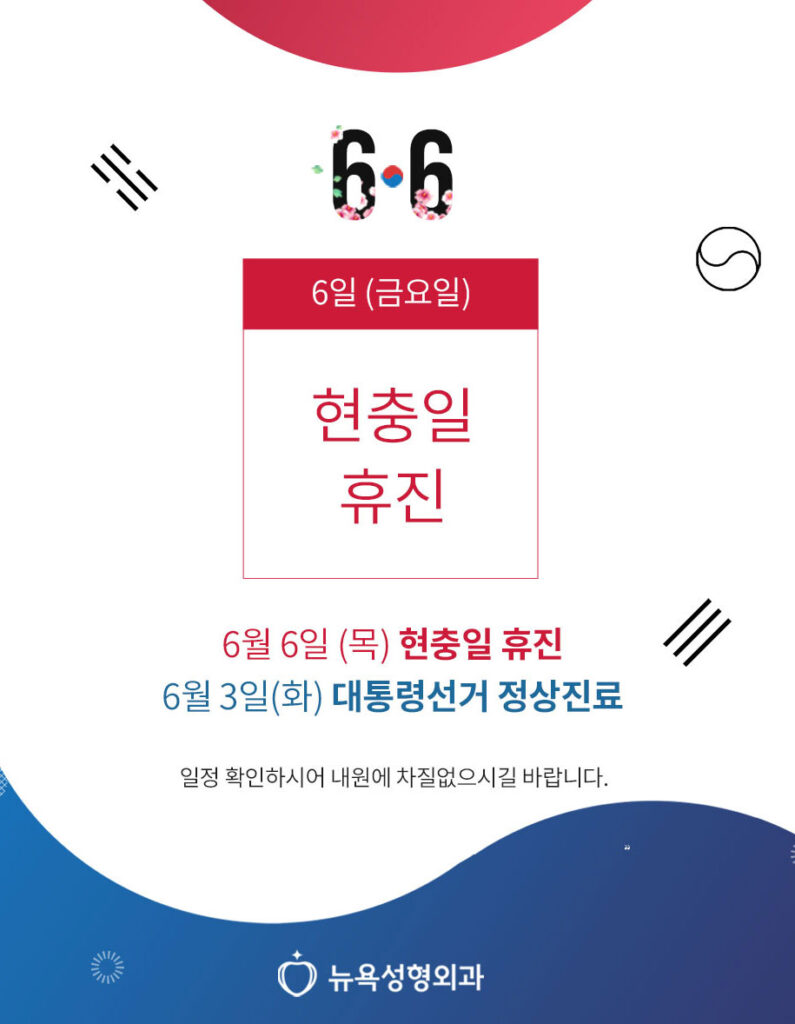 6월 6일 (목) 현충일 휴진 6월 3일 (화) 대통령선거 정상진료